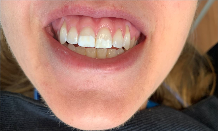 Patient had white spot on lower tooth after having braces. Restored tooth with no anesthesia using ICON resin infiltration.